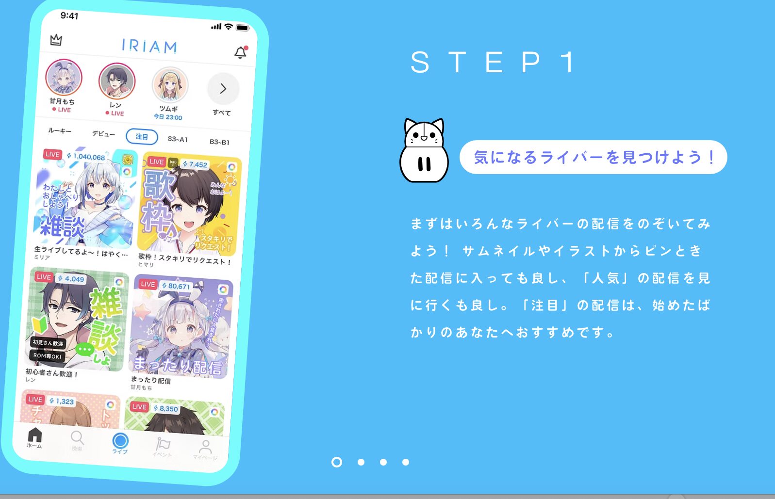『IRIAM(イリアム)』は、株式会社IRIAMが2018年にリリースしたスマートフォン向けのライブ配信アプリです。