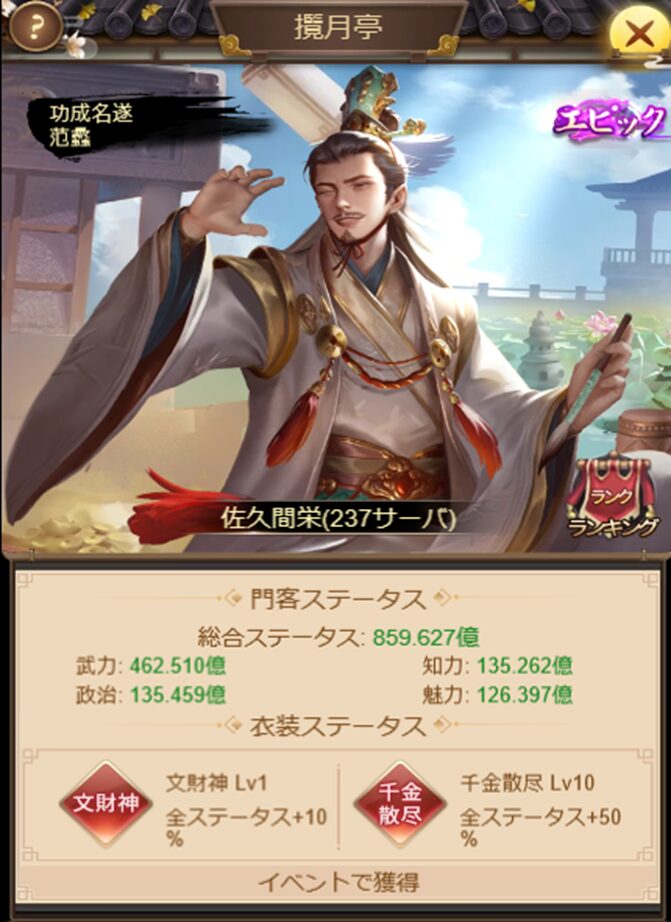 各門客の能力値や属性バランスが重要になるため、戦略性もあります。
